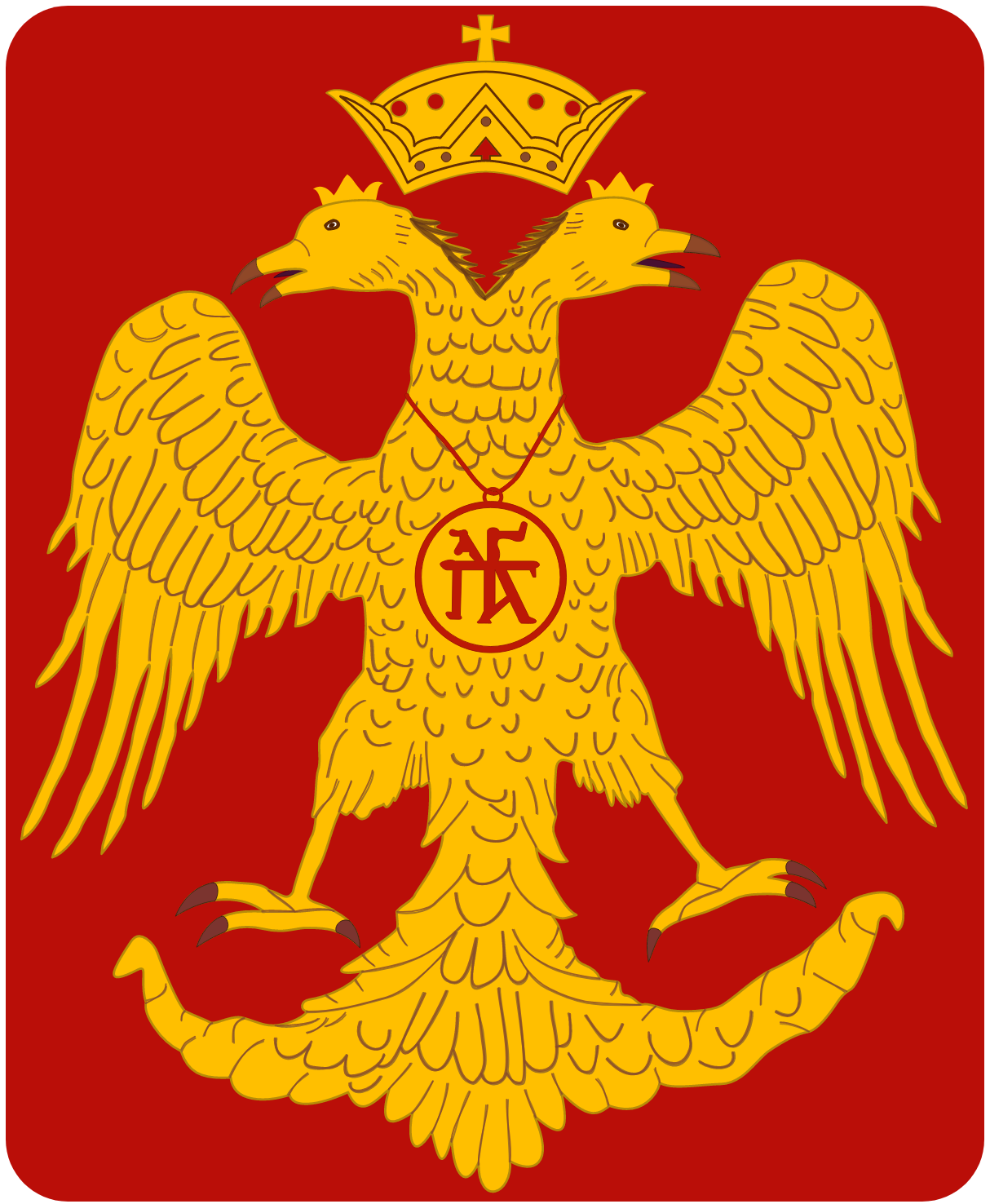 I thought that seemed a bit combative, but it turns out that double-headed eagles have been used for a thousand years. The motif seems to originate with the Byzantine dynasty of Palaiologos, albeit without the tasteful extension of the eagles’ tongues: