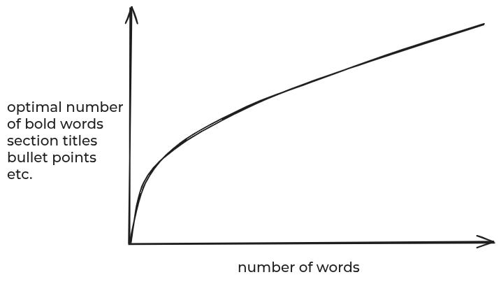 How does the optimal amount of formatting vary in the length of a piece of writing? I suspect it’s like this: