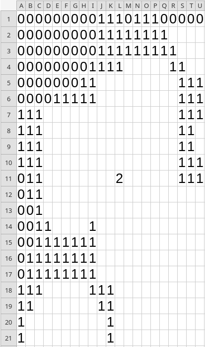 To start, I needed a representation of the map. I looked at the source code for the game page, but couldn’t easily figure out how to extract the map. So I started typing it into a spreadsheet: