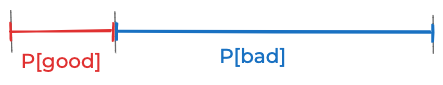 If you combine those two assumptions, that implies that the probability that this particular post is good is 33.3%. That’s true because the red rectangle below has half the area of the blue one, and thus the probability that this post is good should be half the probability that it’s bad (33.3% vs. 66.6%)